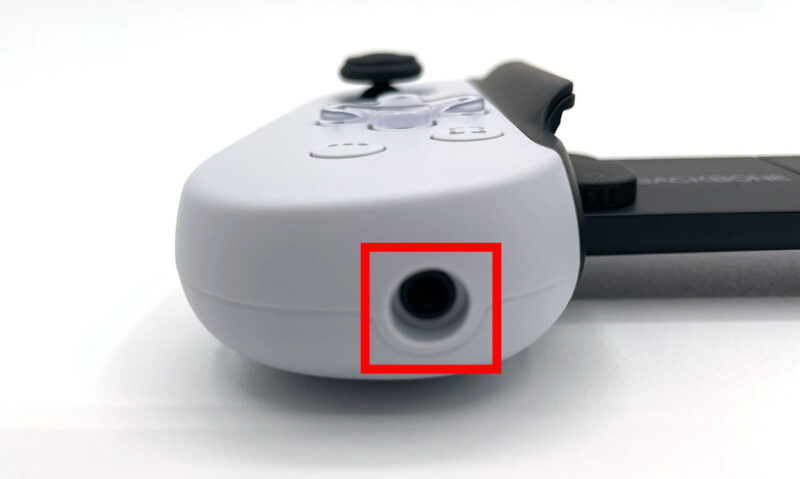 コントローラ左側下部に3.5mmヘッドセットジャックを搭載。最近のスマホはイヤホン端子がついていないので、有線イヤホンしか持っていないという方には嬉しい仕様。マイク入力にも対応しているため、音声チャットも可能だ。