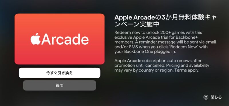 2025年6月5日現在、Apple Arcadeの3ヶ月無料体験キャンペーンが実施されている。
