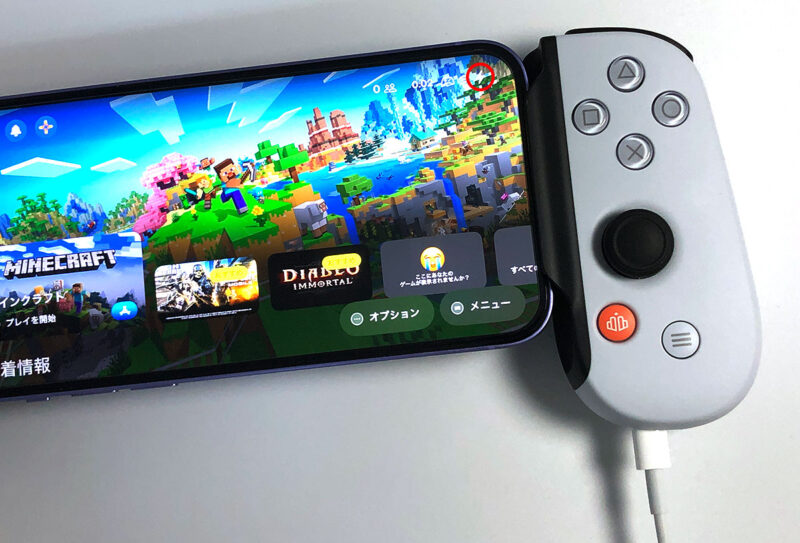 Backbone One本体はパススルー充電対応なので、プレイ中にスマホを充電可能。