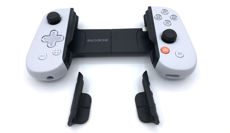 Backbone One本体にはデフォルトで「大型アダプタ」が装着されているが、これはスマホケースを装着していない裸のスマホを取り付けるためのものだ。