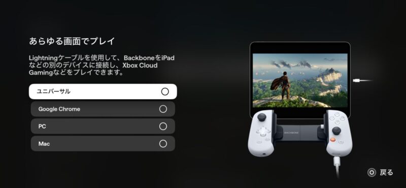 「あらゆる画面でプレイ」は、Backbone Oneをスマホ以外のデバイスでも使えるようにする機能だ。有線モードとも呼ばれる。