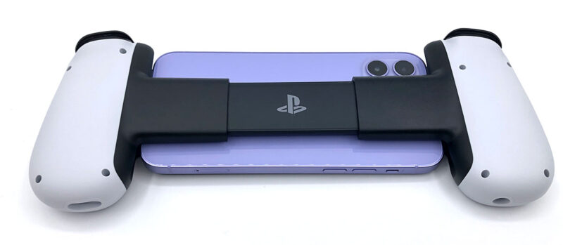 左右に引き伸ばしてスマートフォンを中央に挟み込む伸縮式のデザインを採用しており、装着時にはまるでNintendo Switchのような一体感が得られる。