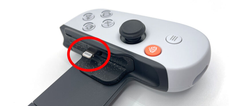 コントローラ右側下部にパススルー充電ポートが搭載されている。Lightning版であればLightningポート、USB-C版であればUSB Type-Cポートになっている。